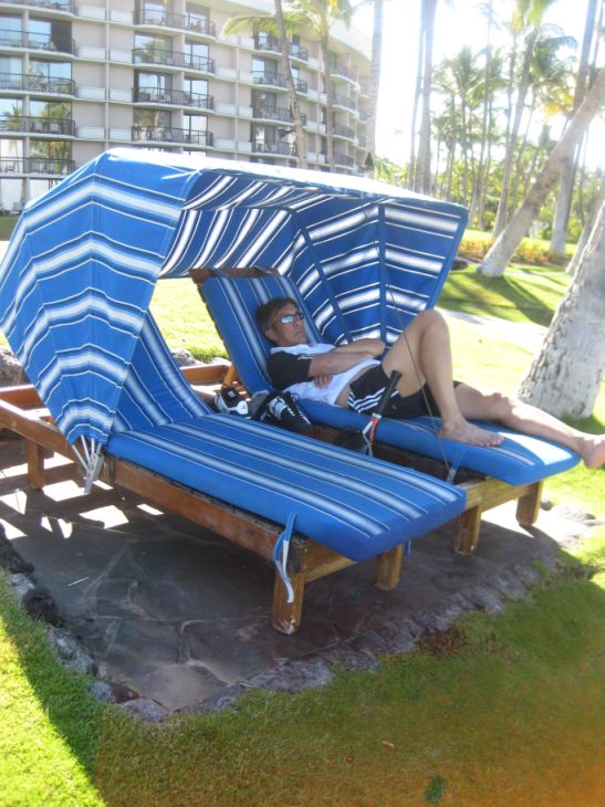 Hoa taking a quick nap! There is a constant breeze so it is so comfortable and easy to fall a sleep. |