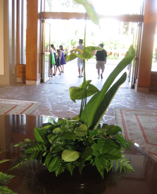Green foliage center piece in the lobby
