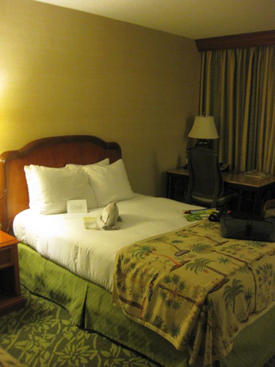 One of the bed in our room. On top of the bed they left a stuffed dolphin toy and we thought that it was a gift from the hotel... After reading the tag on the dolphin, we realized it is not free.. $15 to keep the dolphin.. I'll pass on it. |
