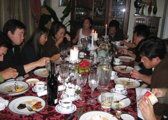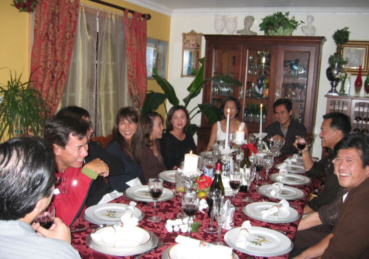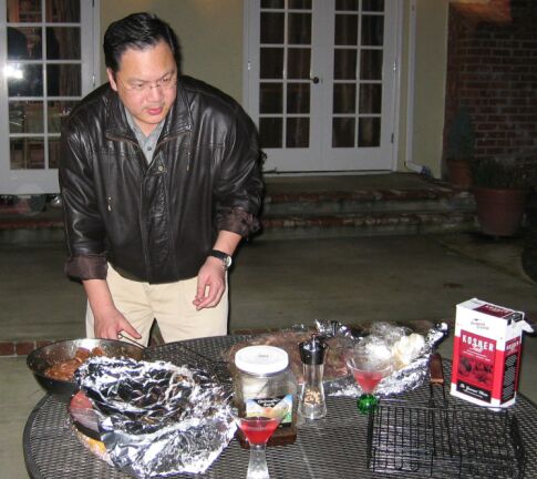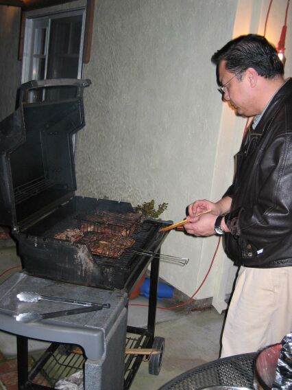 While everyone is warm and cozy inside, Master Chef Phuc, renowned for his famous steaks, is preparing to grill the meat on the BBQ. According to the chef, he had to make love to his meat by massaging and rubbing it with a special sauce, then he let the meat rest at room temperature for at least 2 to 3 hours before it is ready to be grilled. The result is the best filet mignon ever, it just melt in your mouth.