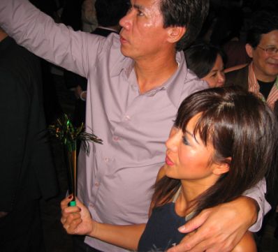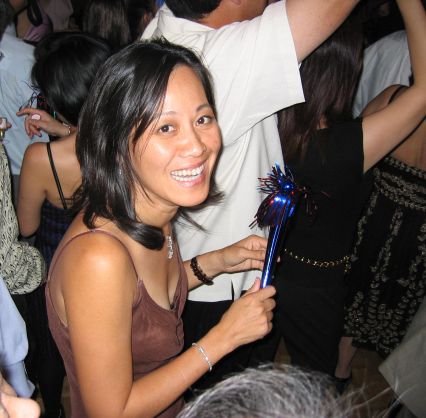Thuy is watching the descent of the balloons, signaling the arrival of the New year! |