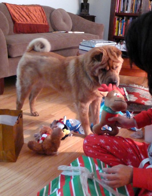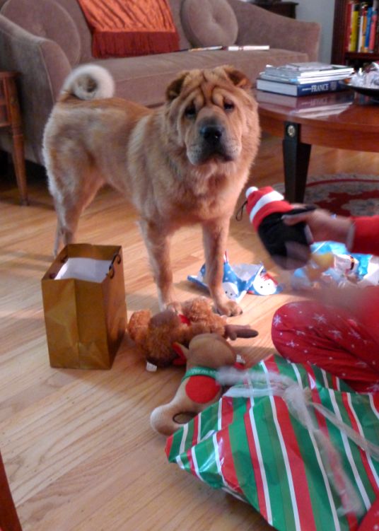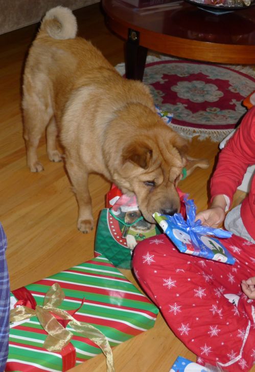 Rocky got 3 or 4 presents this year-What a lucky dog! |