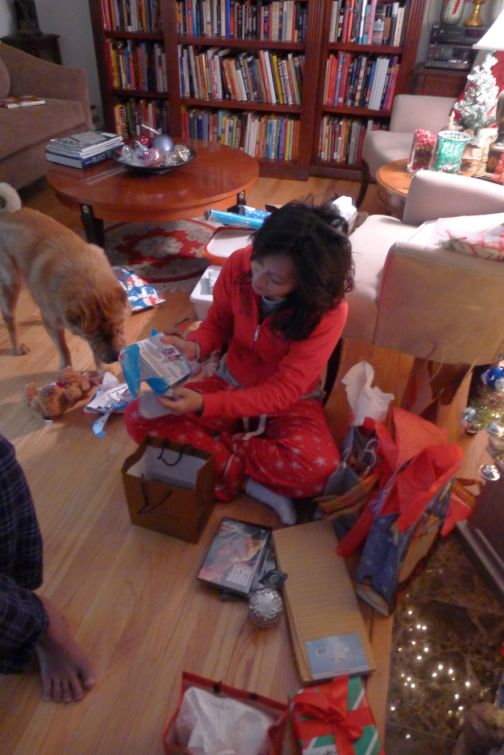 It is Christmas day! Kevin got home really late but he decided we should open our presents really early in the morning (6:30Am) so he can go to bed right afterwards. Hoa and I we are early riser so no matter what time we went to bed we are usually up by 7:00AM. So might as well open the presents!