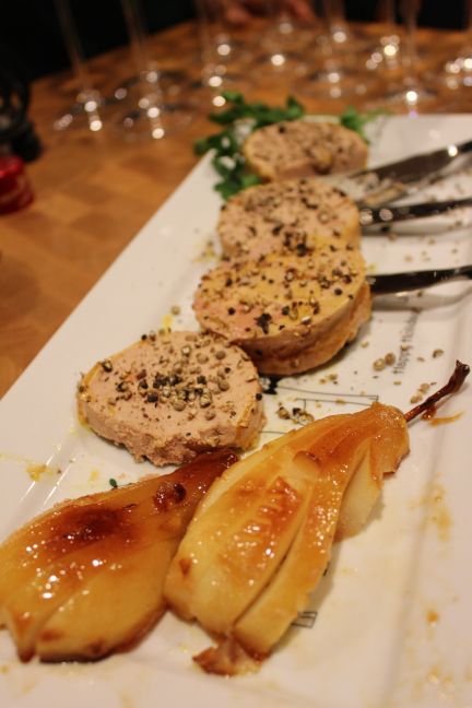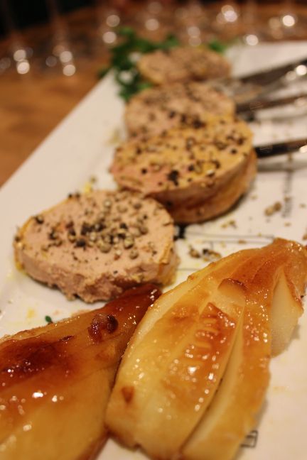 I offered canned foie gras with lots and lots of black and white coarsely grounded peppers with caramelized pear.