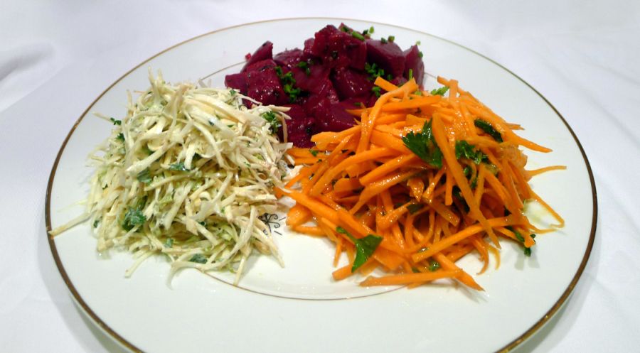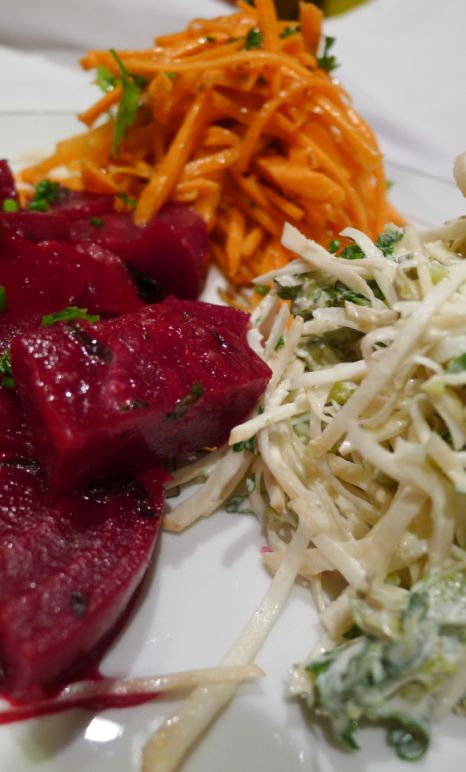 Céleriac rémoulade (Celery root), roasted beets, and carotte râpée