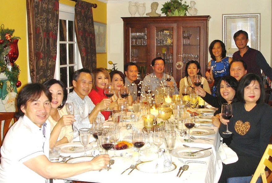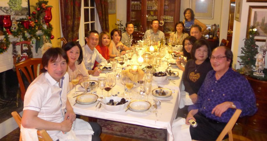 For desserts we had Grand Marnier Souffle but Hoa did not take any pictures. I don't know how we did it but we drank 2 bottles of champagne and 6 bottles of wine for a total of 8 bottles for 14 people. No wonder everybody was in a great mood!