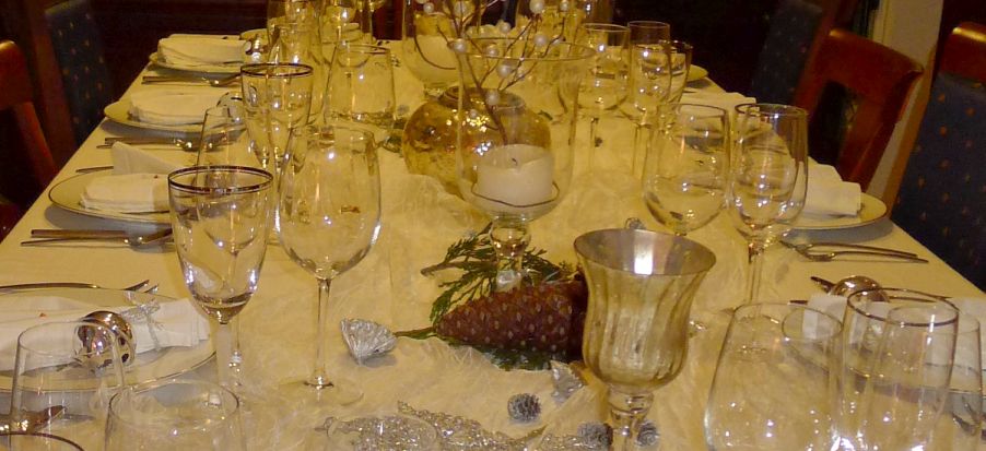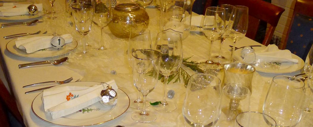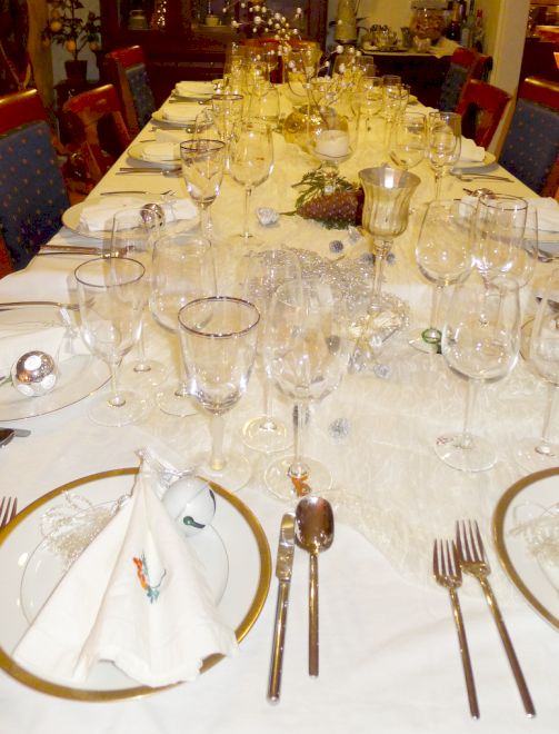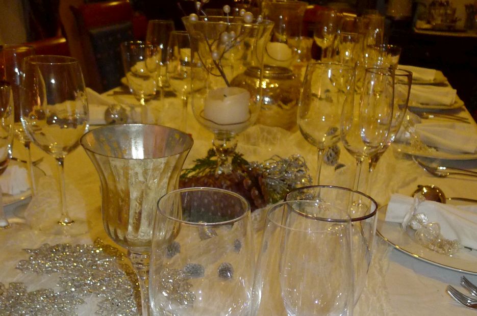 Red and White wine glasses, water goblets are brought out for the occasion,