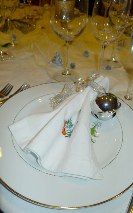 For my tablescape I wanted the table to reflect a white winter wonderland with silver and white ornaments under a blanket of white snow.