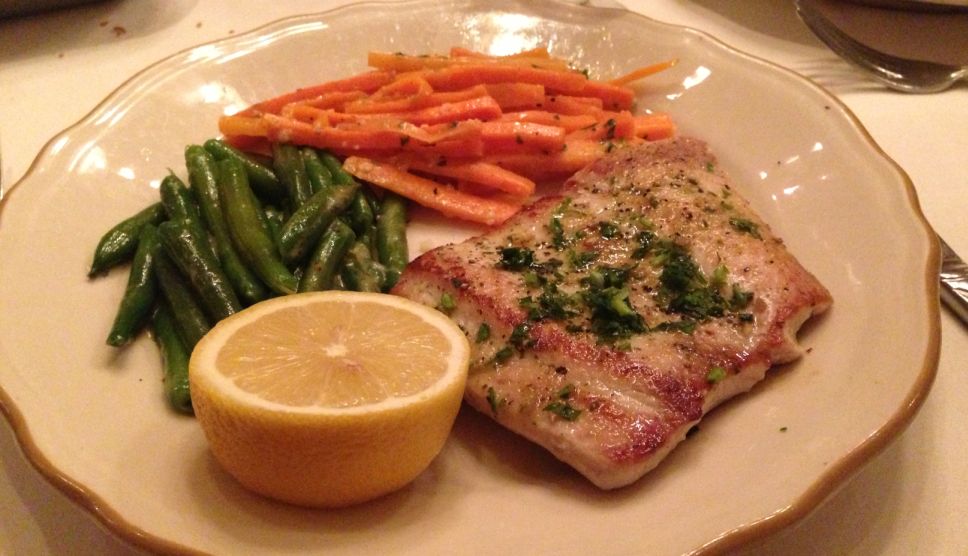 Kevin ordered the Petrale Livornese - sole with fresh tomatoes and garlic. |