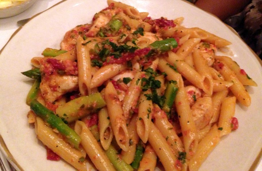 Kristie ordered the Penne Fantasia with chicken , sun-dried tomato, asparagus & garlic.