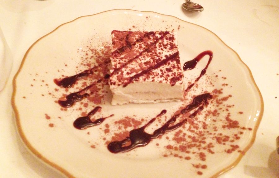 and of course the traditional Italian dessert: Tiramisu with mascarpone with whipped cream, espresso, liqueur, ladyfinger and chocolate