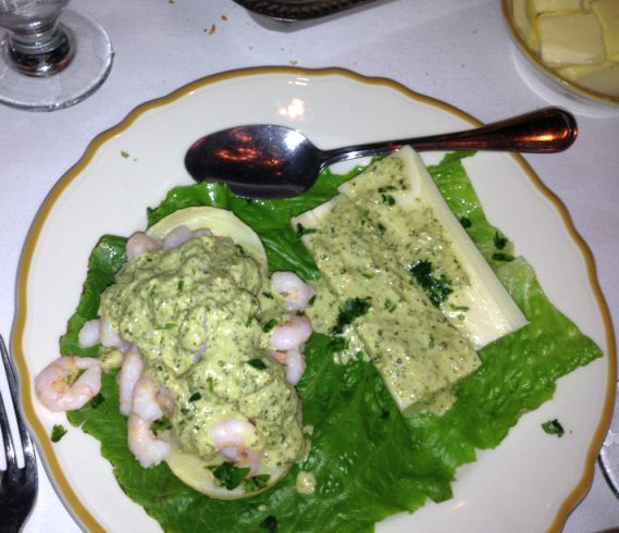 Fondo Di Carciofo Con Gamberetti Artichoke bottom with shrimp . At first Kevin though the presentation was pretty lousy but he was surprised that it actually tasted pretty good!