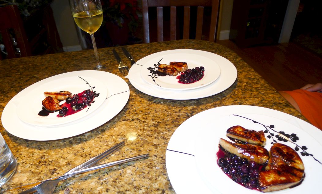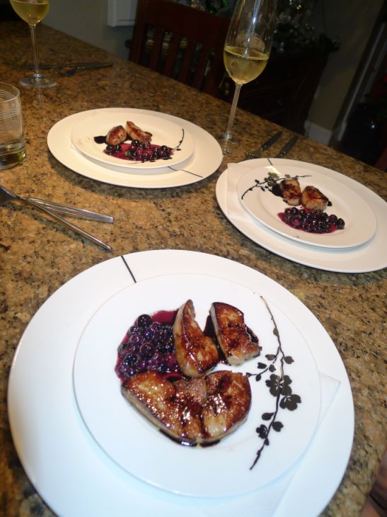 Christmas time is all about spending time with family! This is year is no exception to spend the whole day with Hoa and Kevin. I usually throw a feast on Christmas eve and Christmas day and cooking for 3 people is really easy and fast. This year I am serving pan seared Foie Gras with a reduced balsamic glazes with sautéed blueberries. The main dish is a pan seared spicy lobster.