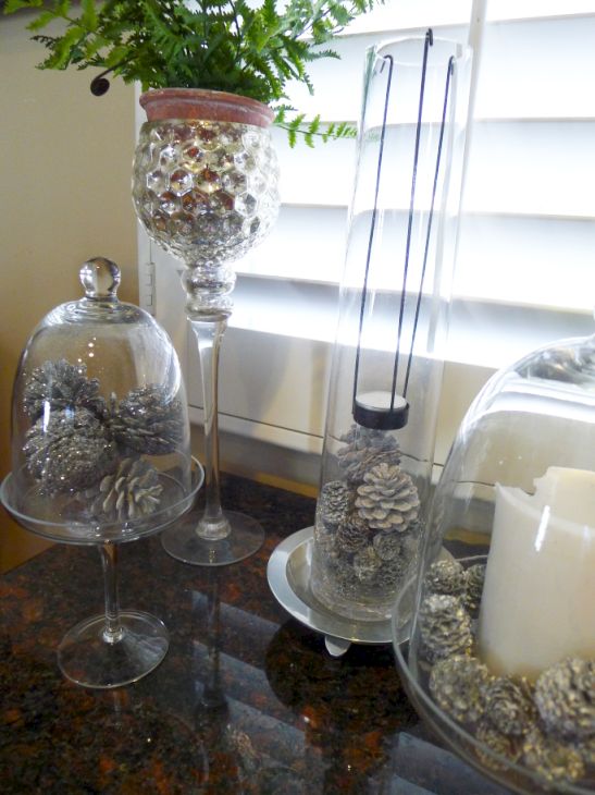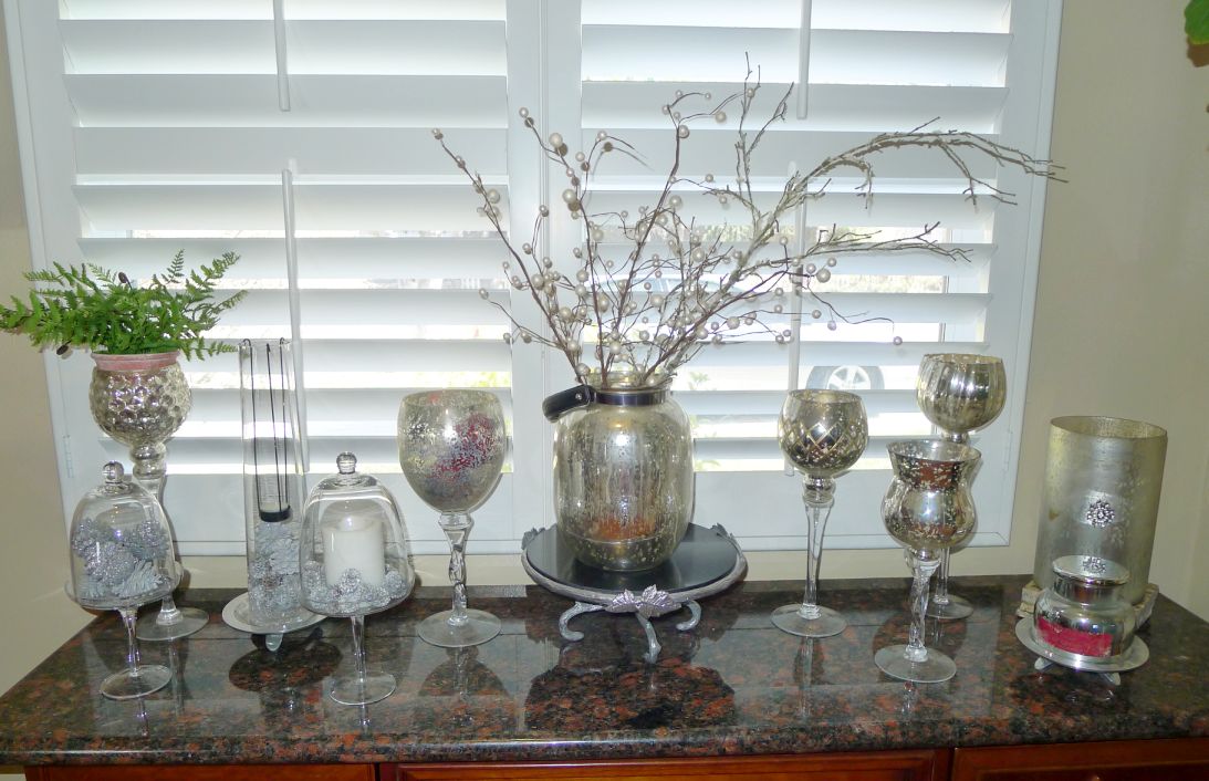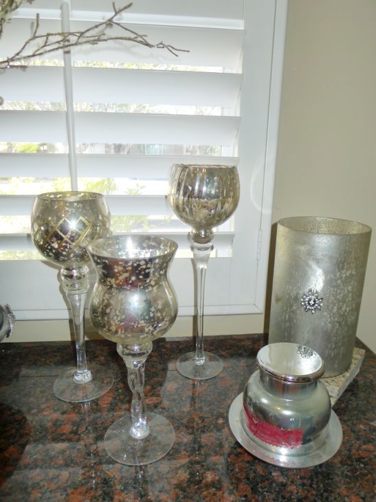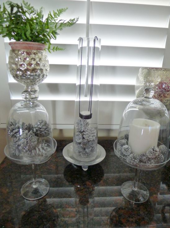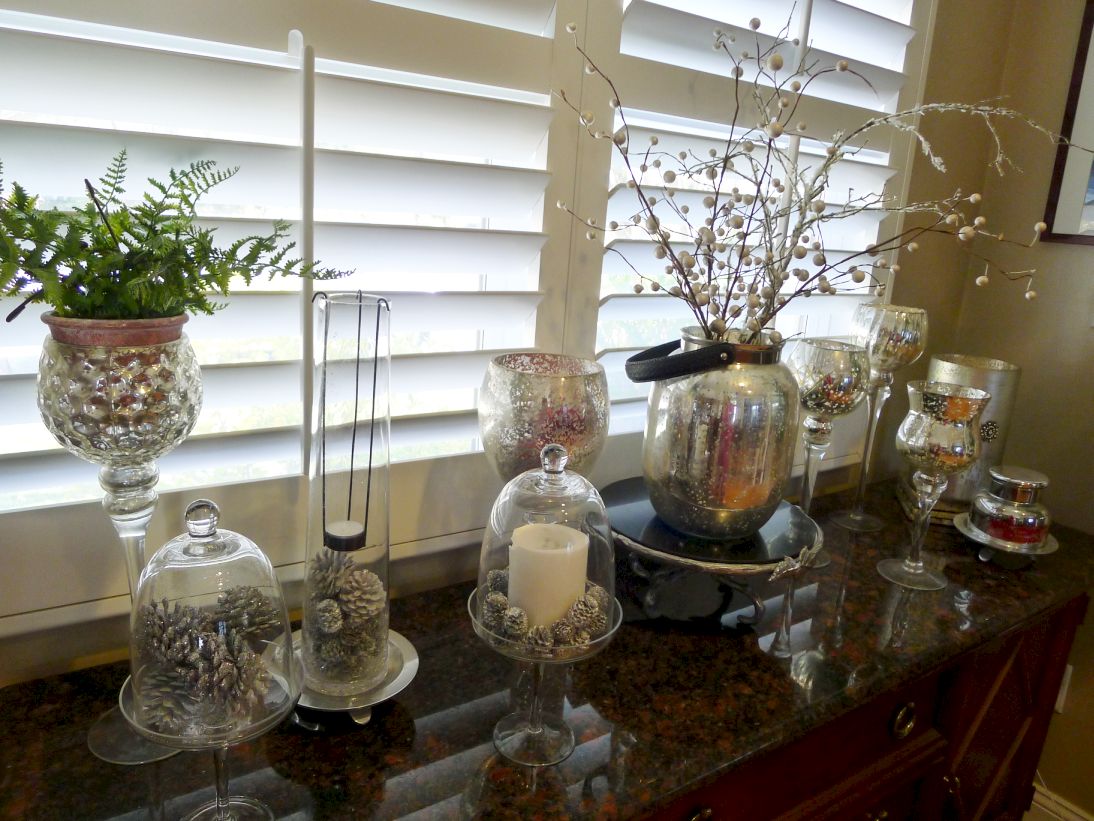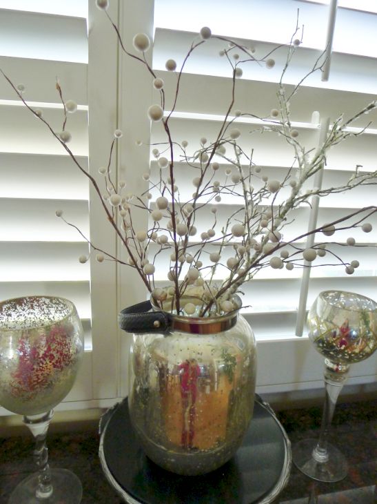 I totally forgot to take a picture of my Christmas decoration this year! What you are seeing here is my after Christmas decorations! I am having a post holiday dinner party the 3rd week of January and the theme is Winter wonderland. When I think of winter all I see is snow white so I choose silver to have a luxurious look and added a few glitters here and there to make it fun and interesting.
