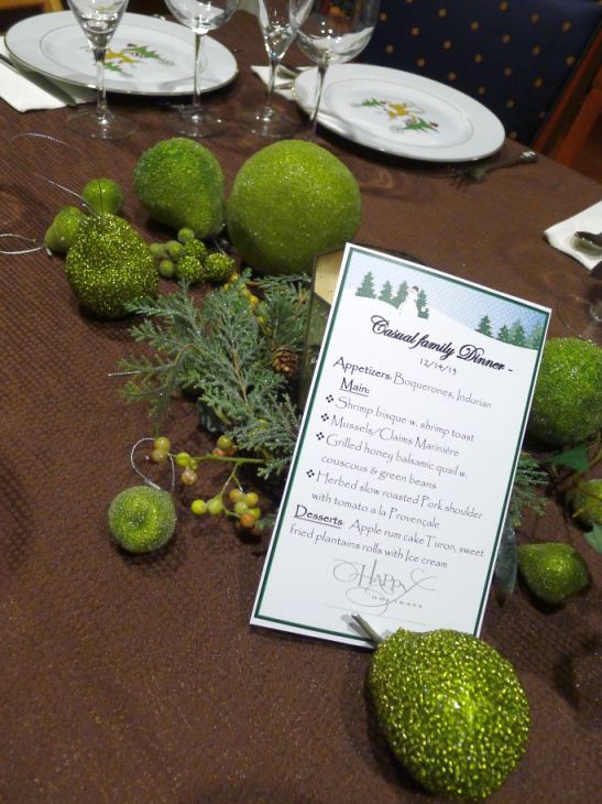 This year there are only three weekends before Christmas and trying to schedule a dinner during this time of the year can be challenging. Eating out is also not great as all the restaurants are so crowed and service really suffers so the other option is to eat at home. Even though Hoa is traveling to India I am having our friends over for dinner since this the only Saturday that everyone can make it. Tonight it is going to be a casual dinner meaning the ingredients I am using tonight are basics for a home meal. However I decided at the last minute to dress up my table to make it more festive.
