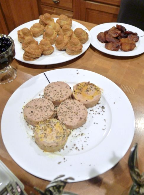 Canned foie gras with blueberries sautéed in butter and brown sugar, caramelized apples and Loan brought a bunch of Pate chaud.