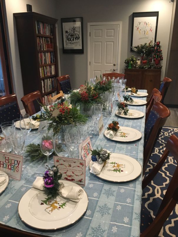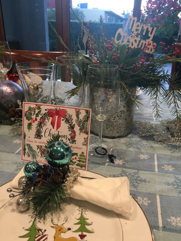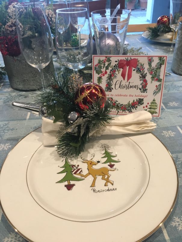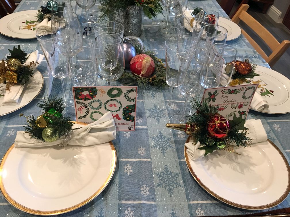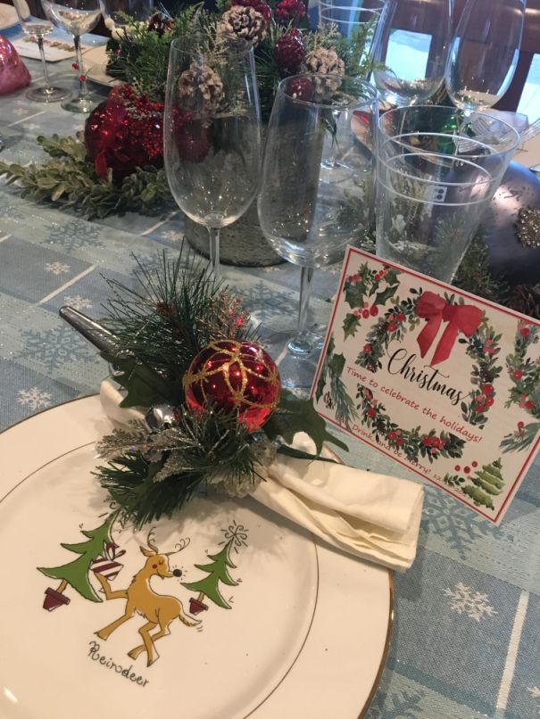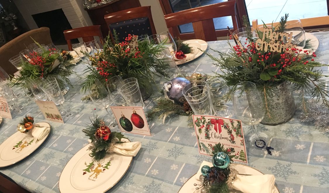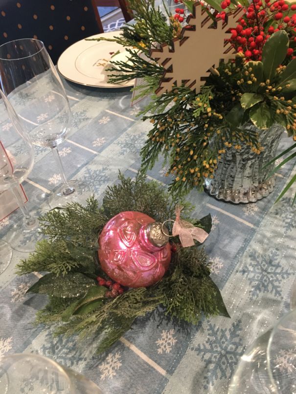 Christmas decoration are brought to create a welcoming and festive tablescape