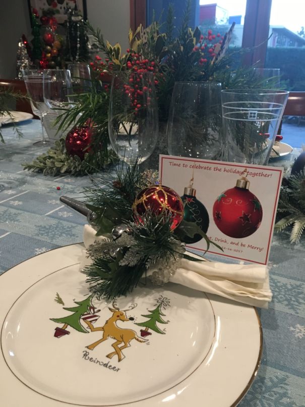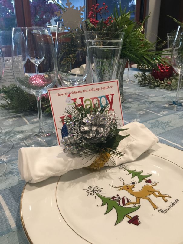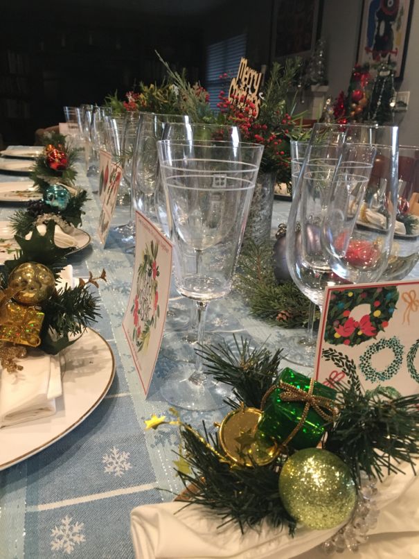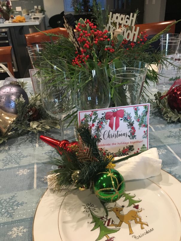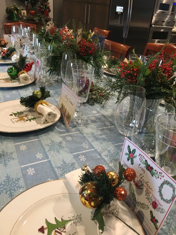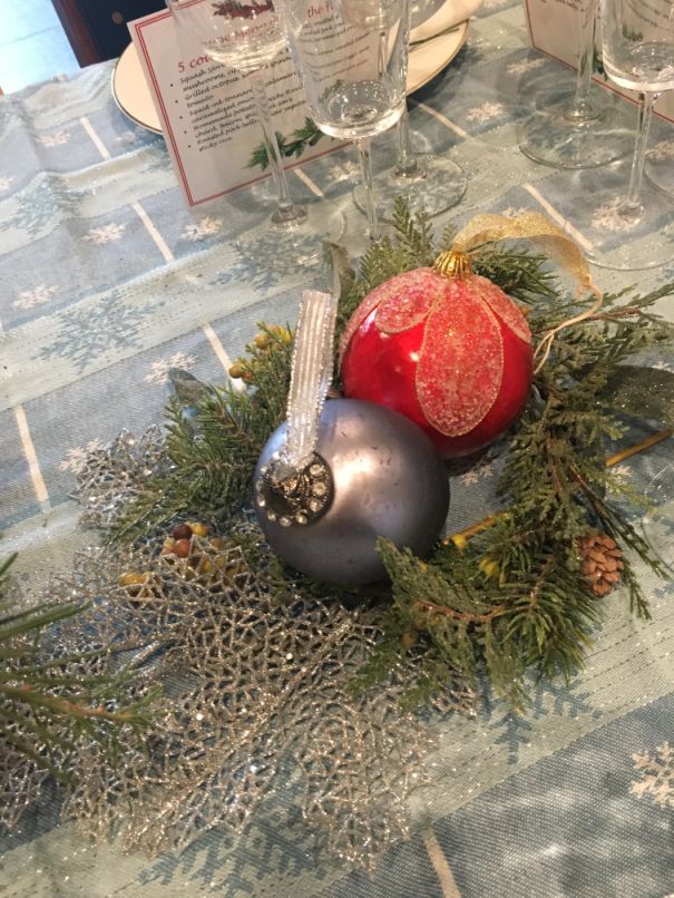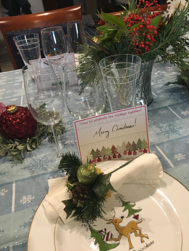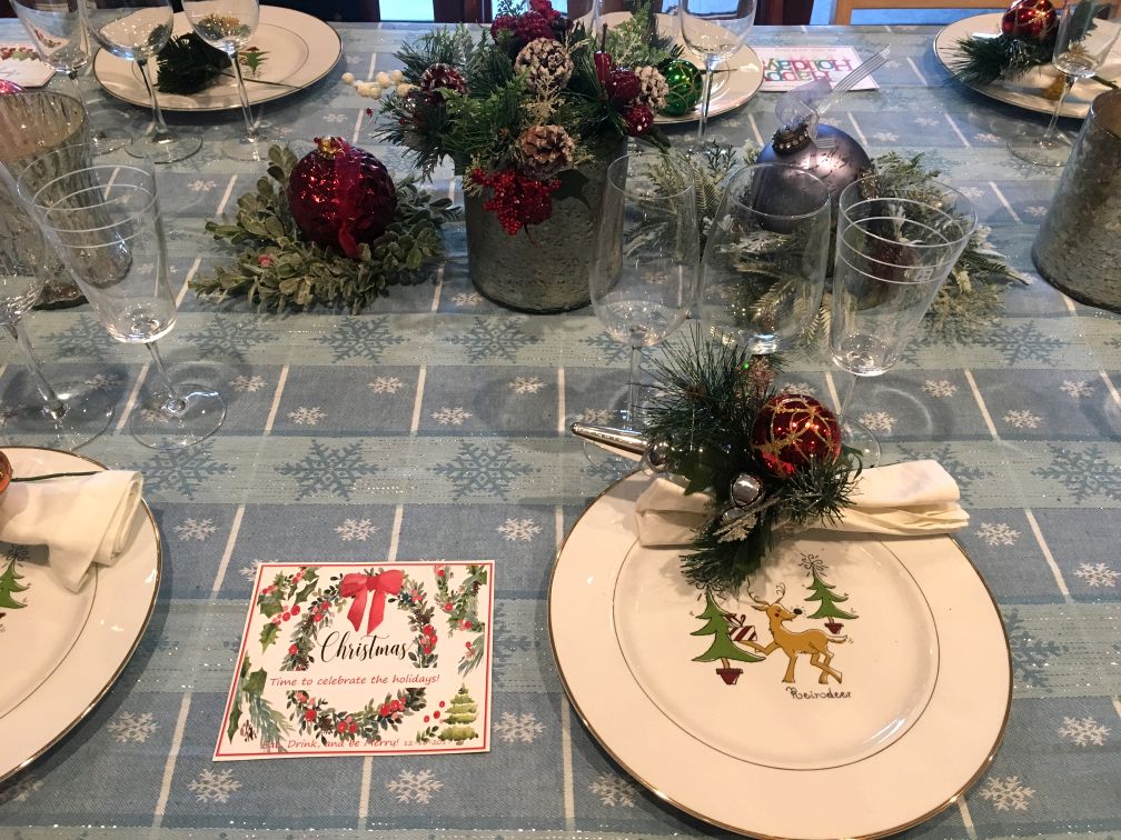 Christmas decoration are brought to create a welcoming and festive tablescape