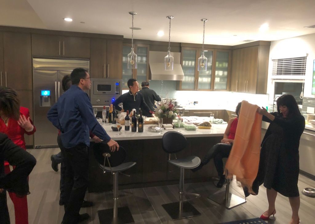 Hanh N. brought a bunch a scarves for all the ladies..Maily is checking out one of them..