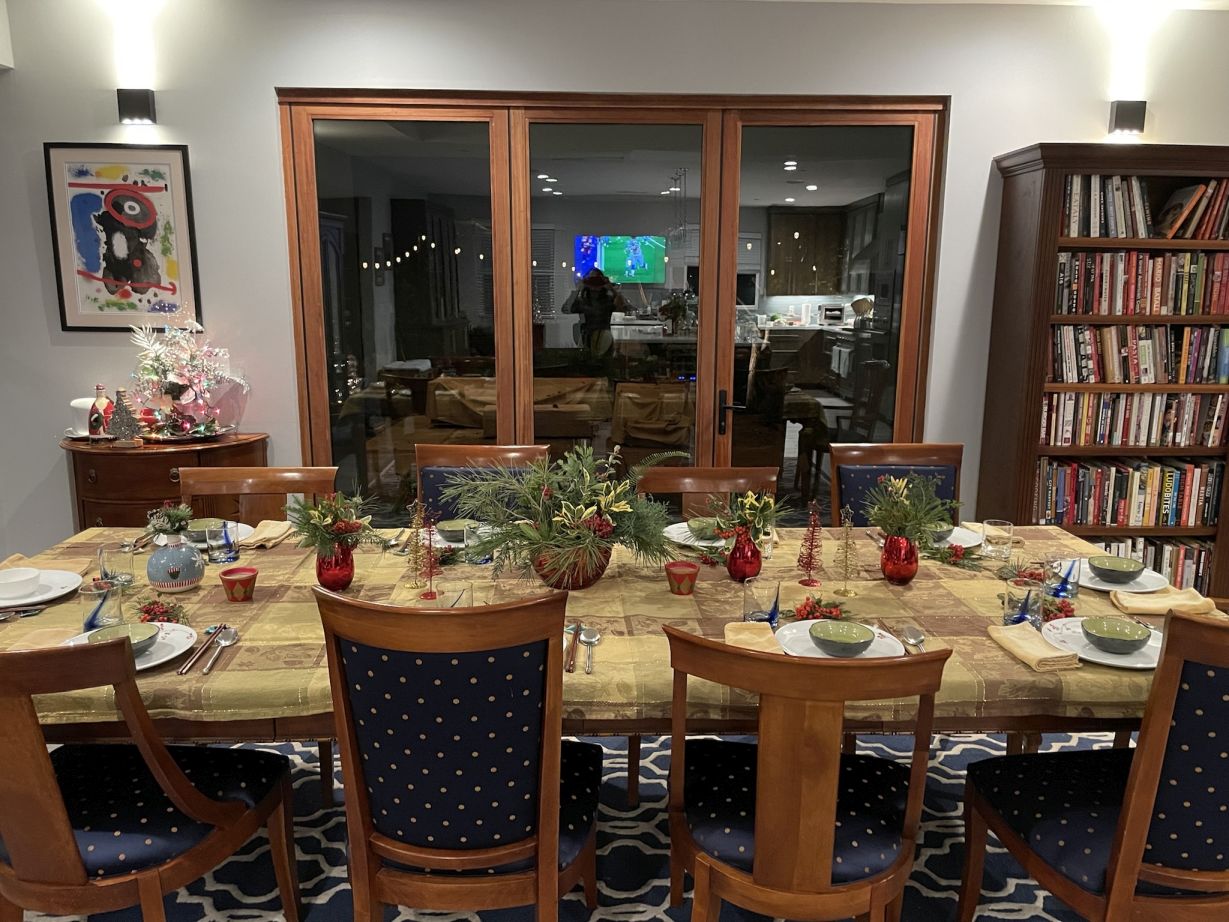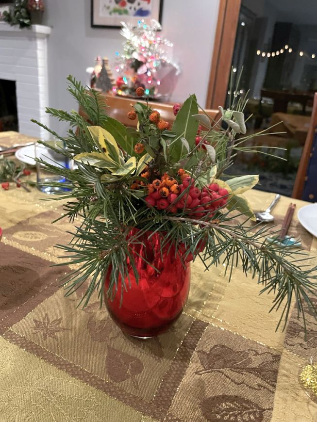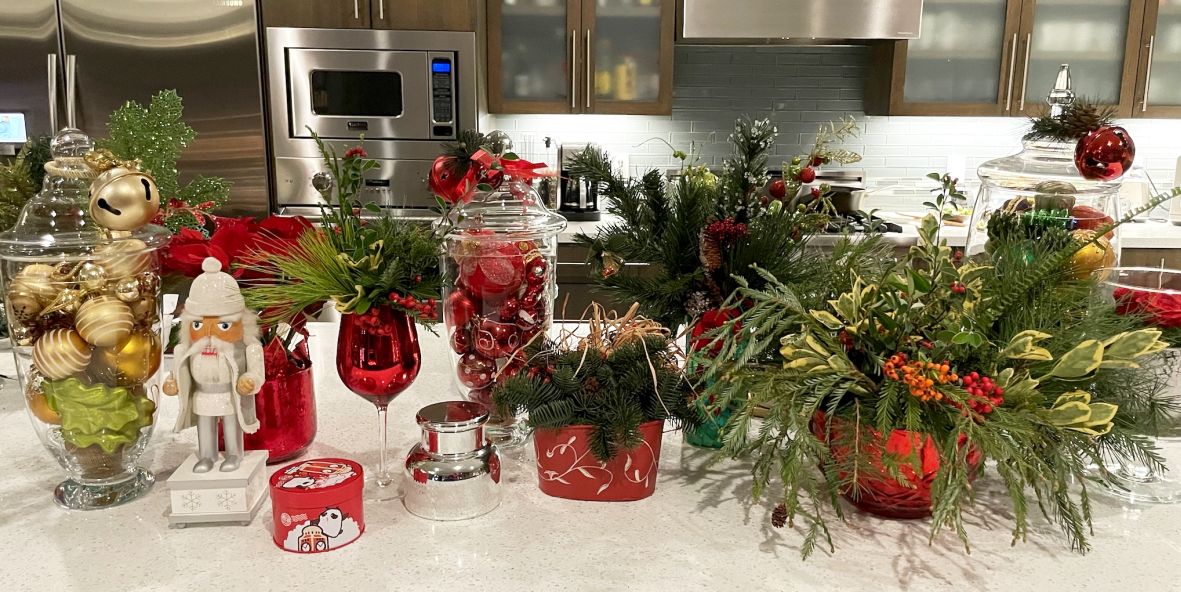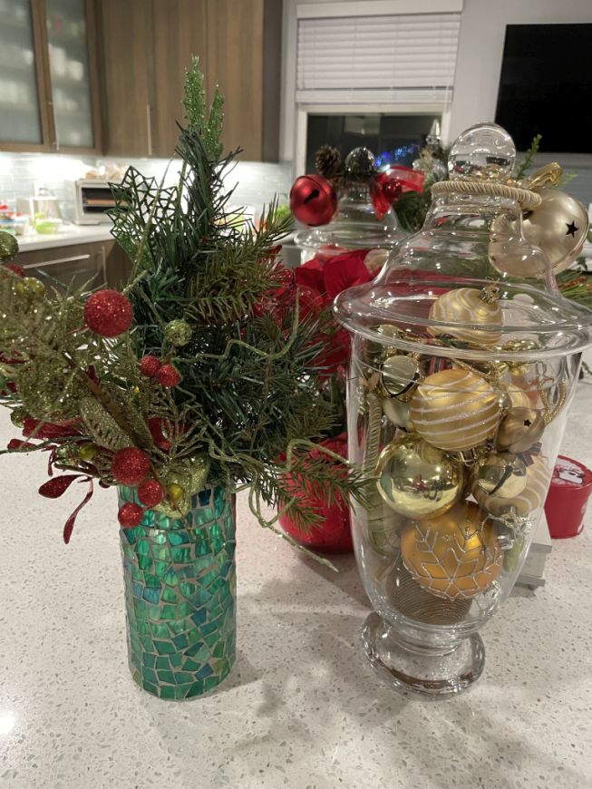 Christmas decoration on my kitchen Island. I just had a Christmas dinner yesterday so a lot of the decorations are the same but re-arranged so it looks a little different.
