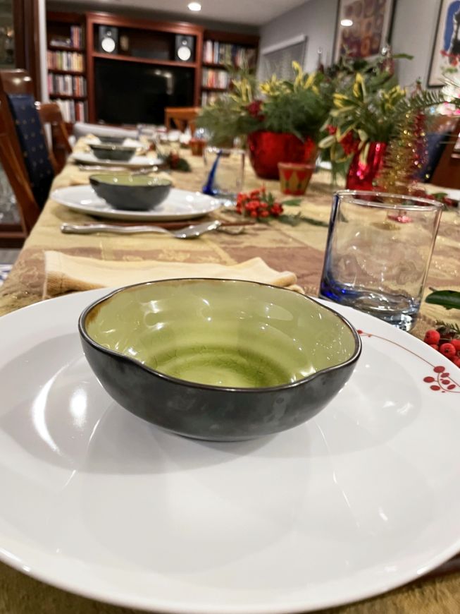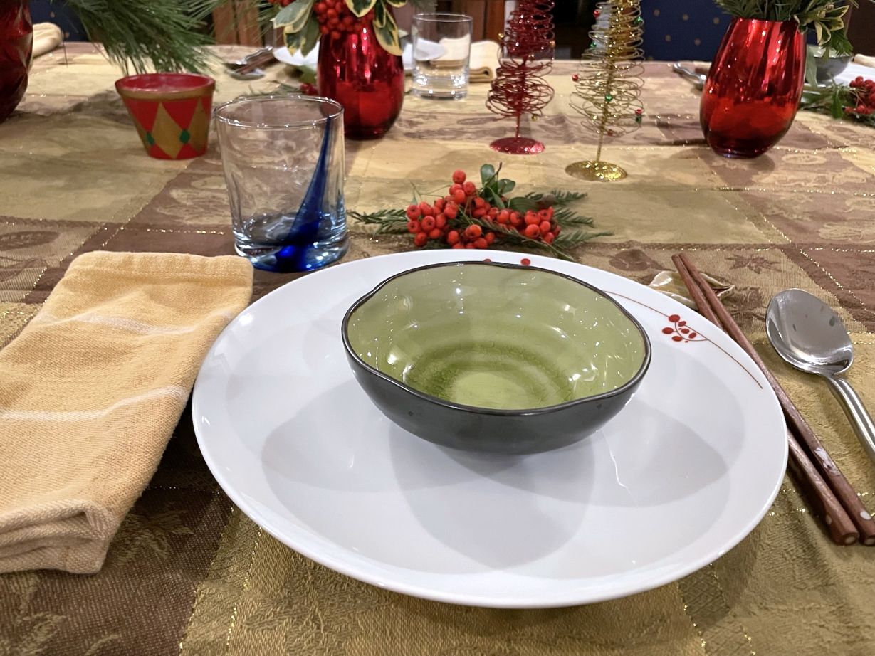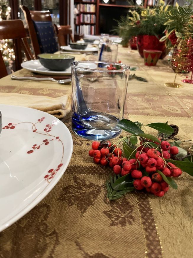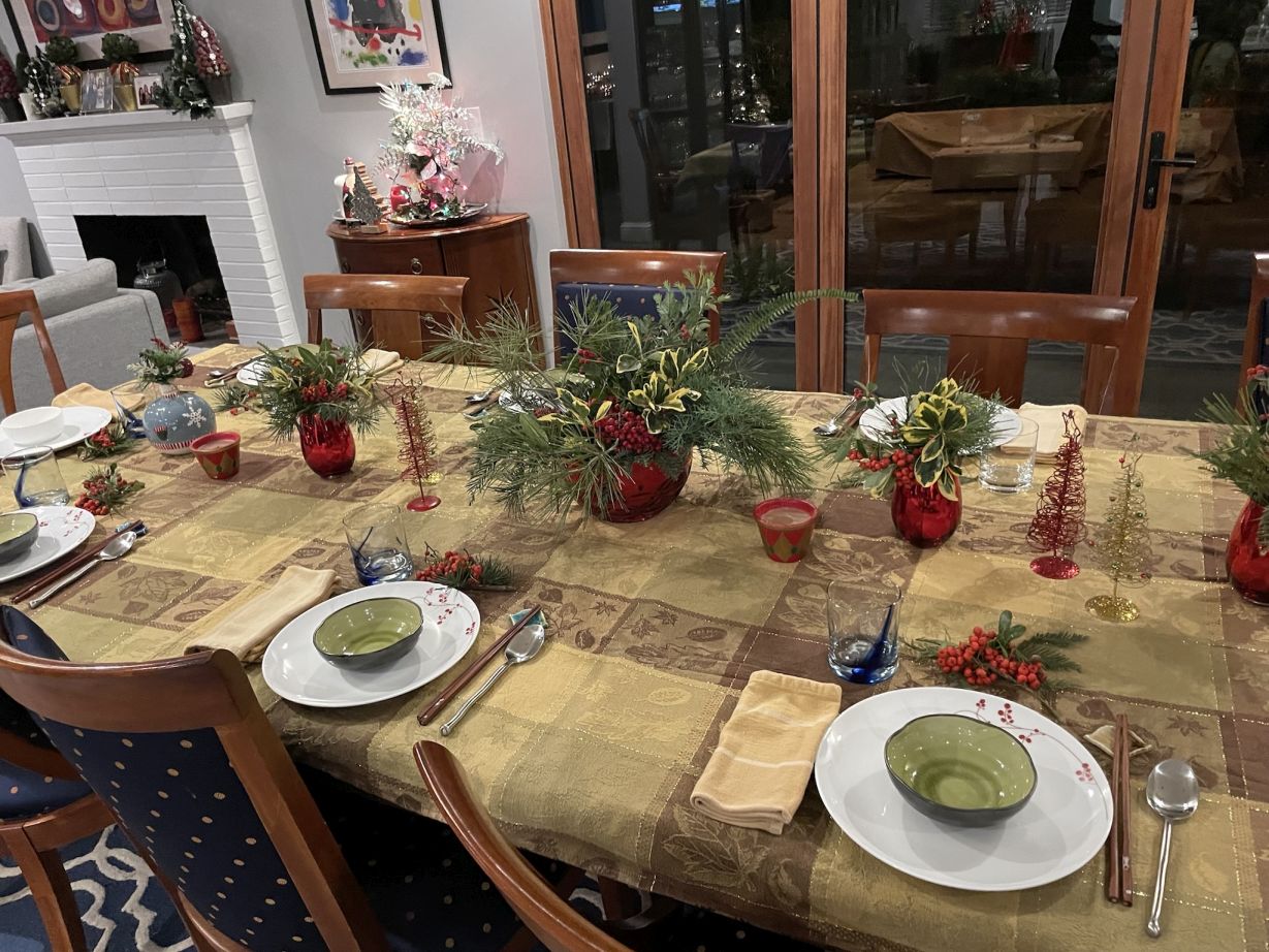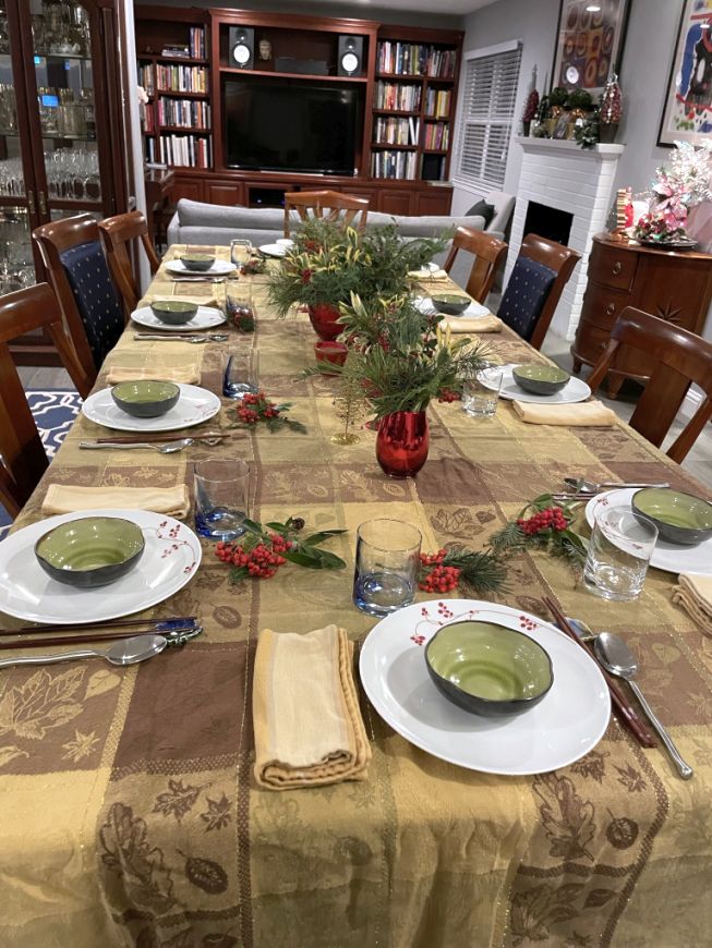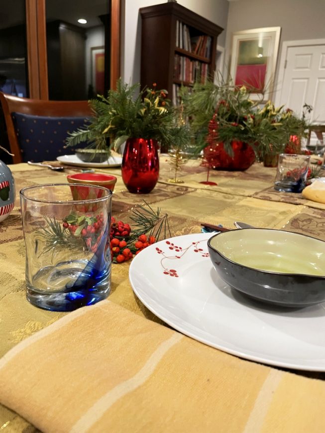We are having a Thai dinner and so my Table is a lot simpler as I need room to put all the plates as I am serving family style.