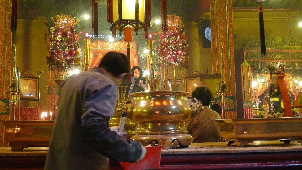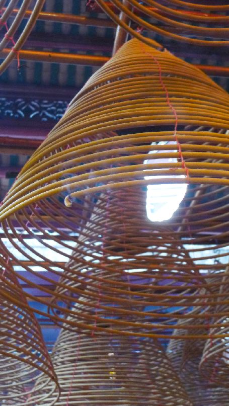 While Man Mo Temple is no longer used for settling disputes, believers come here for a number of other reasons. Devotees burn huge bell-shaped coils of incense that hang from the temple's ceiling in hopes of attracting the attention of the gods. Some also believe the incense is food for the "spirits" that have gone before.