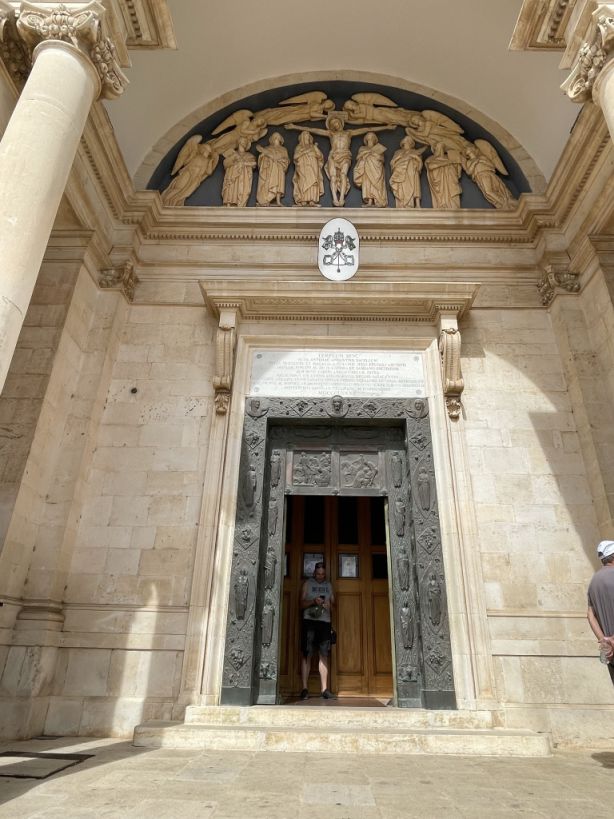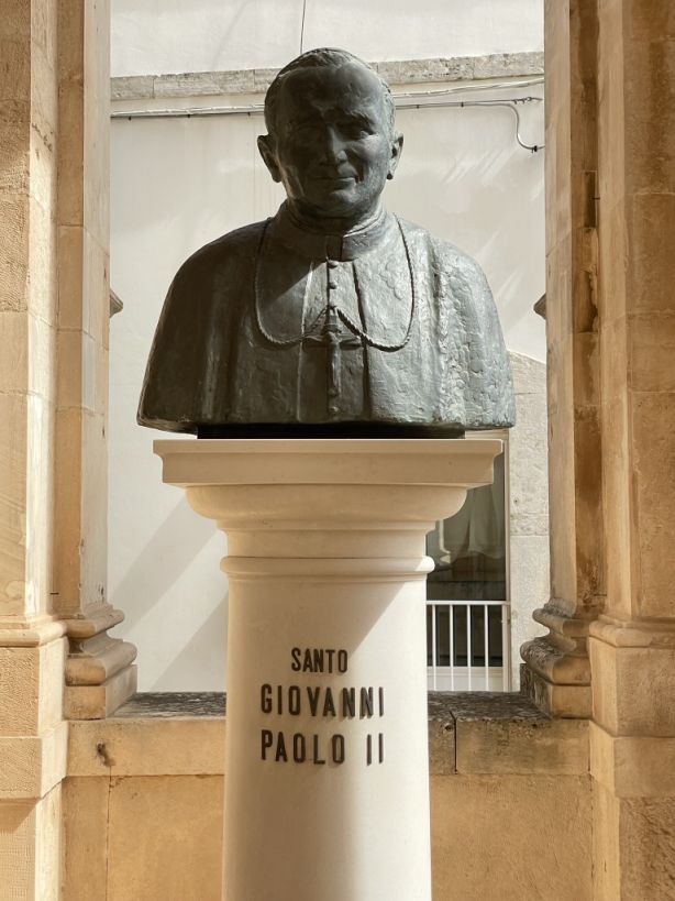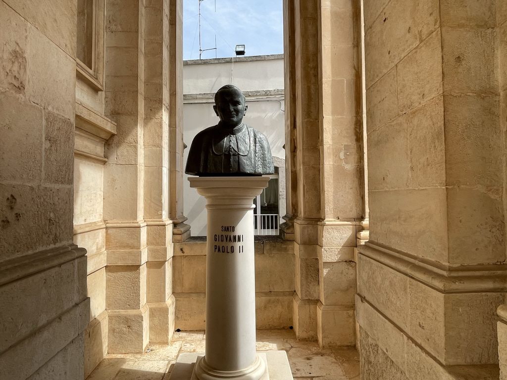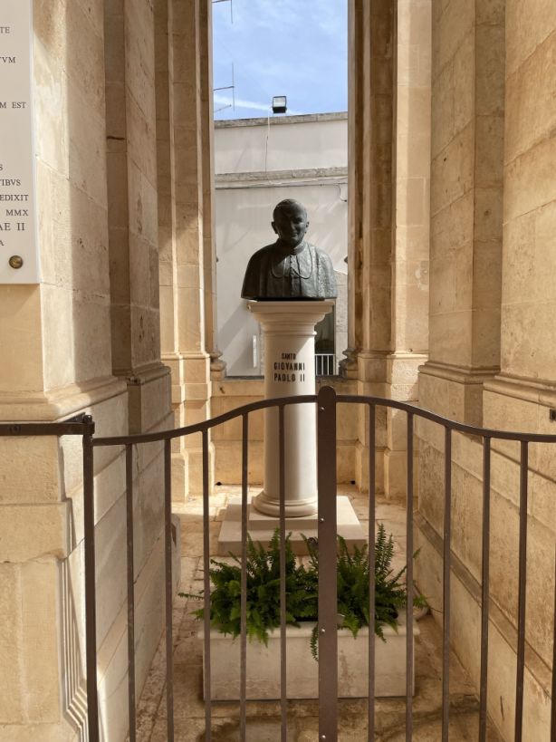 Outside of the basilica there is a bust of Pope John Paul II.