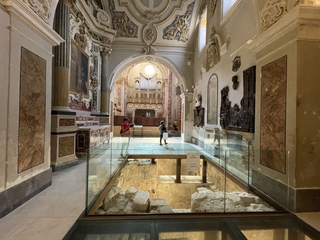 Baroque interior. during the renovation ruins have been found underground and it is now being studied.