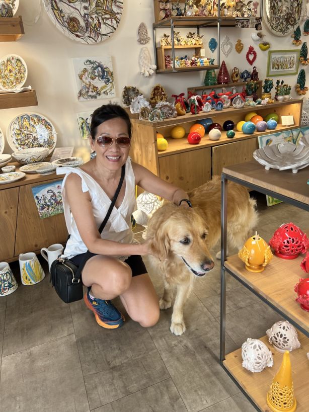 The owner of this store let his friendly golden retieiver greets customers.