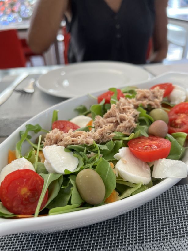 We ordered a salad a tuna salad with fresh mozarella, tomatoes, and olives