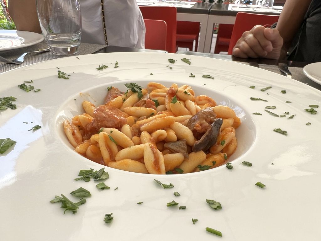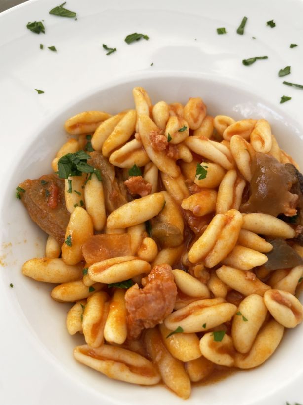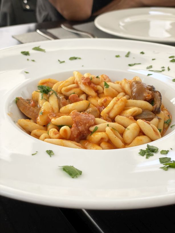 Cavatelli with Cardoncelli mushroom, sausage and fresh tomatioes