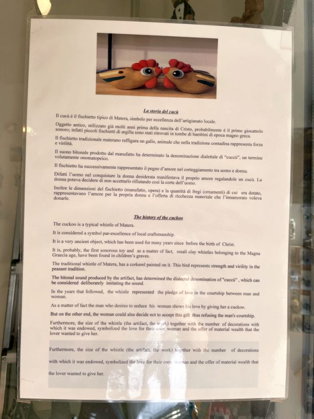 The cukko is a typical whistle of Matera and it wa used since the birth of Christ.