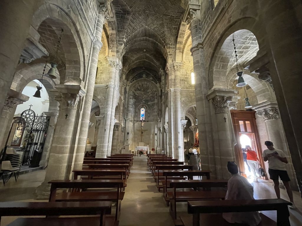The church dates from the 13th and the architecture of the church is mainly Romanesque but there are influences of various styles such as Arabic in the portals, Gothic in the arches and Greek in its cross plan.