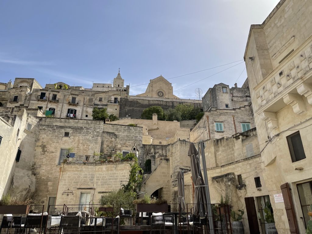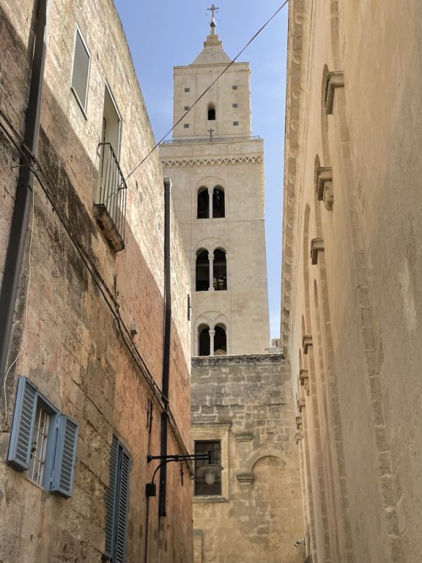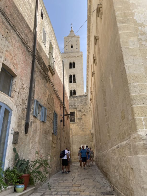 We are now headed to Matera Cathedral which you can see it in the distance with the pointy top.