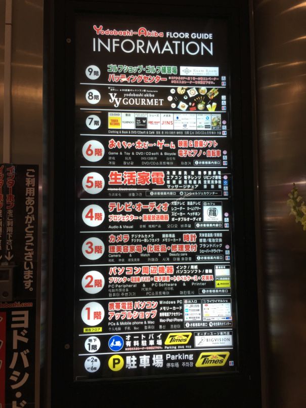 Yodobashi Akiba is a nine-story mega complex and is the largest electronics shop in Tokyo.