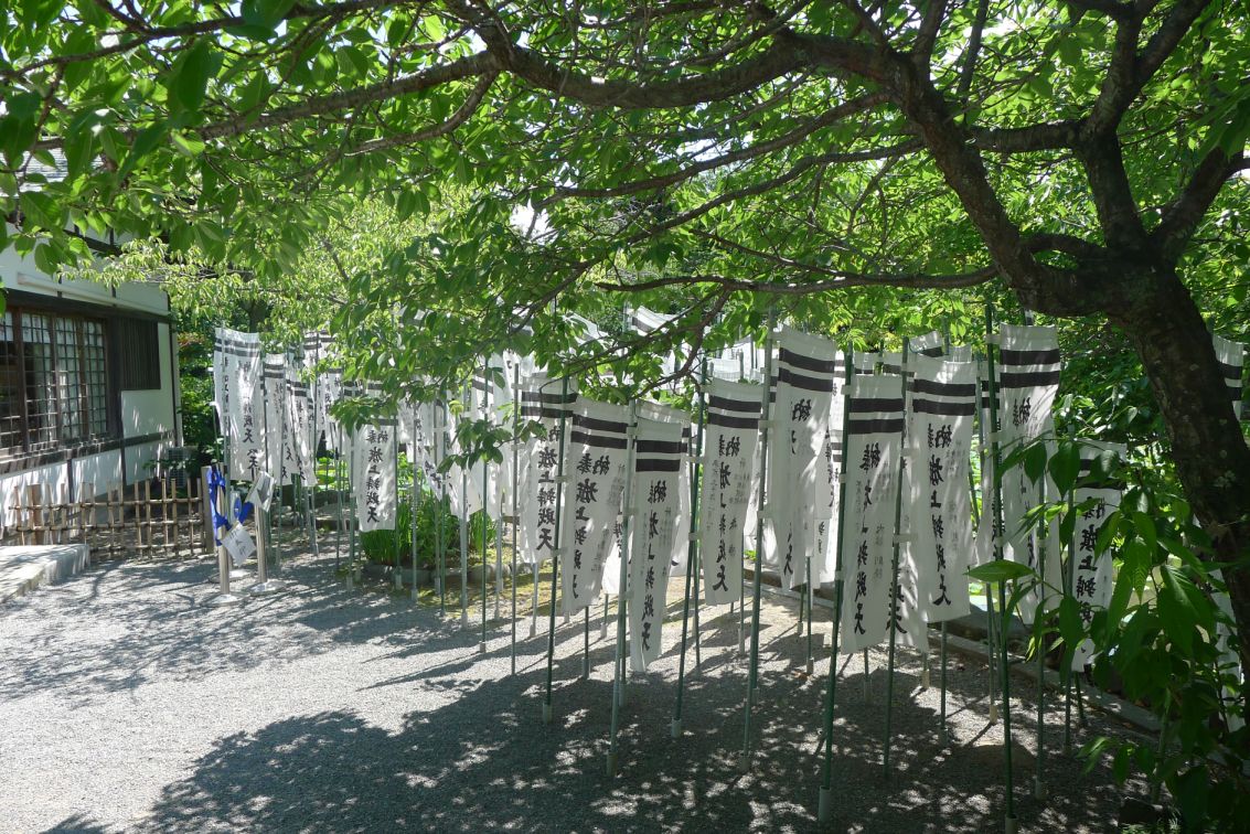 In the back of the shrine you can see a bunch of white flags (more details below).