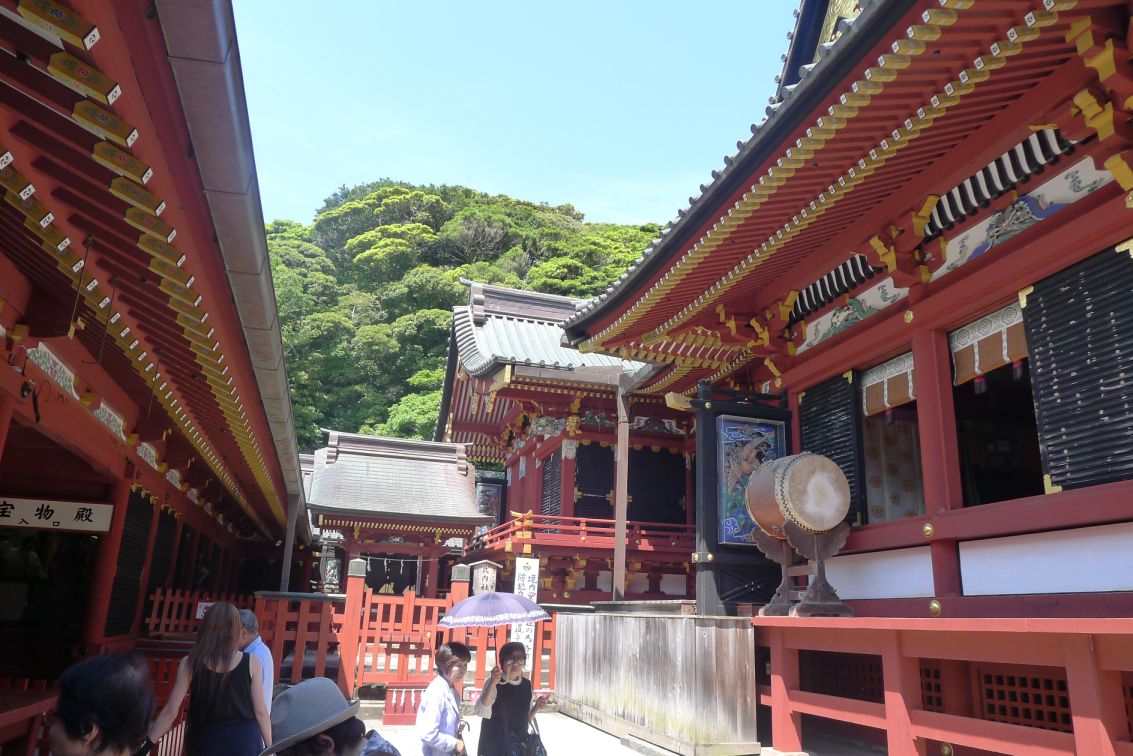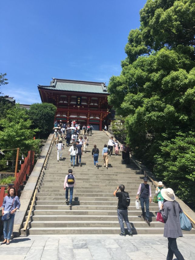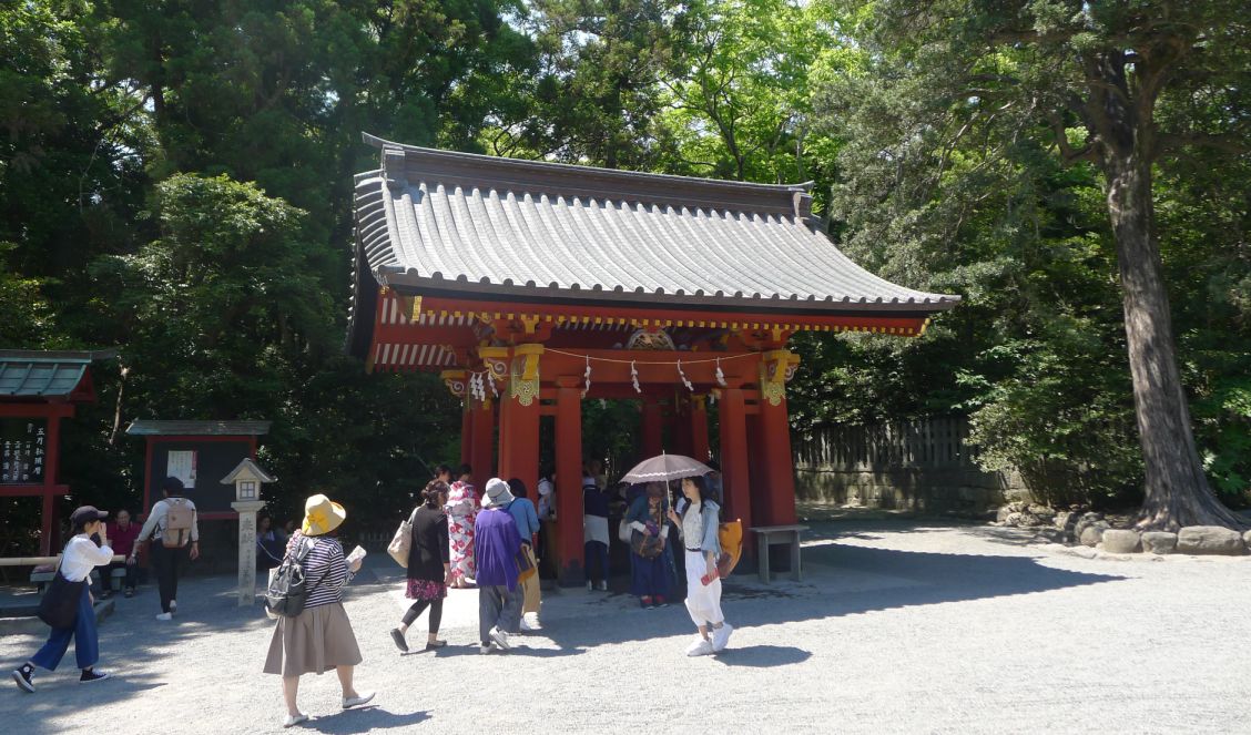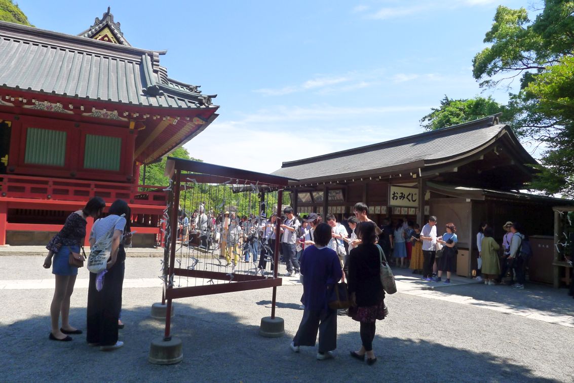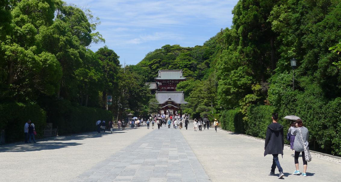 The path leading to the shrine is called Dankazura. This approach to the shrine was originally constructed on behalf of Minamoto Yoritomo's wife, Masako, to pray for a safe birth. In spring, Cherry trees and azaleas in full bloom form a flower tunnel leading to the shrine.