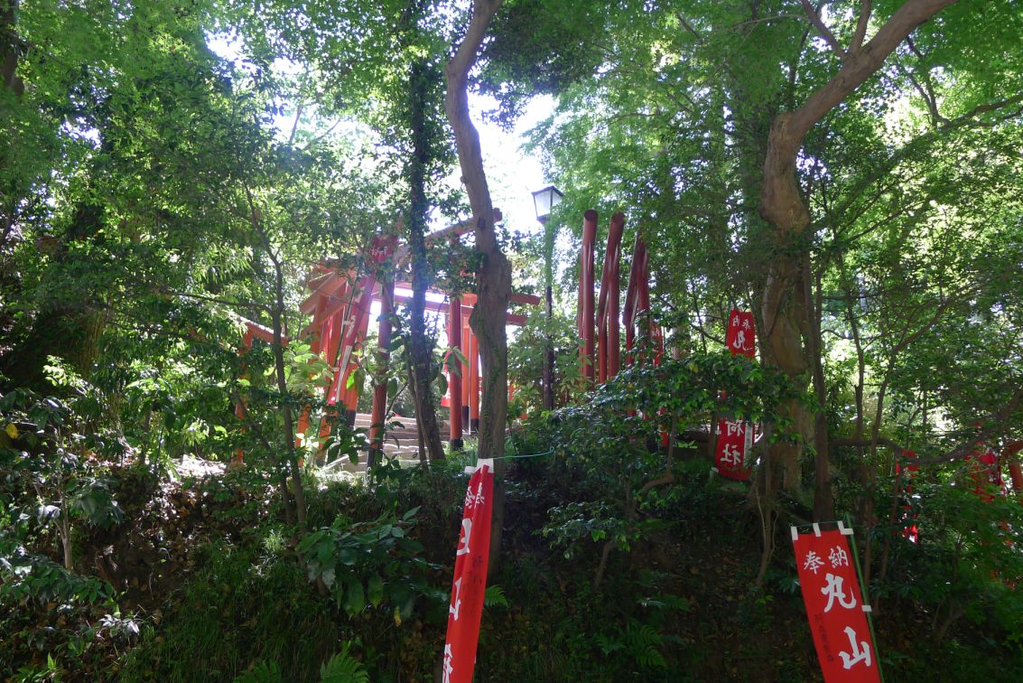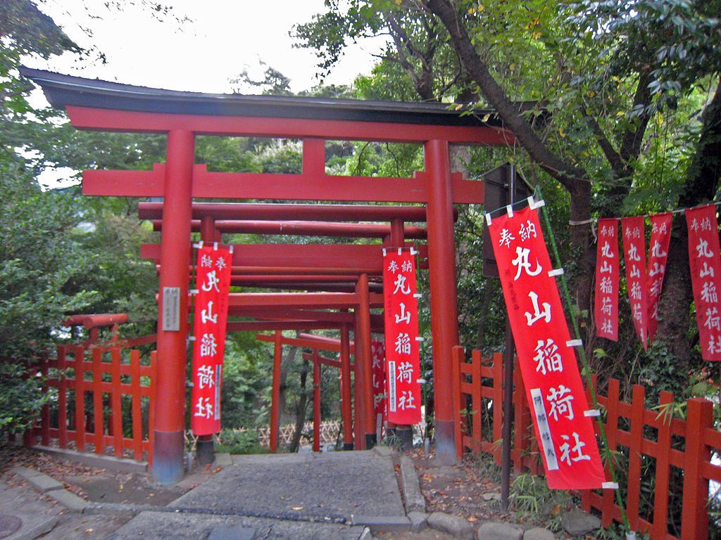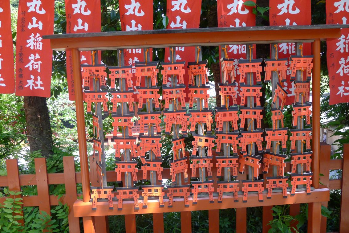 Maruyama Inari shrine is associated with success in business, a good harvest. The two foxes (next and below the 2 stone lanterns) are messengers of the Inari shrine Kami