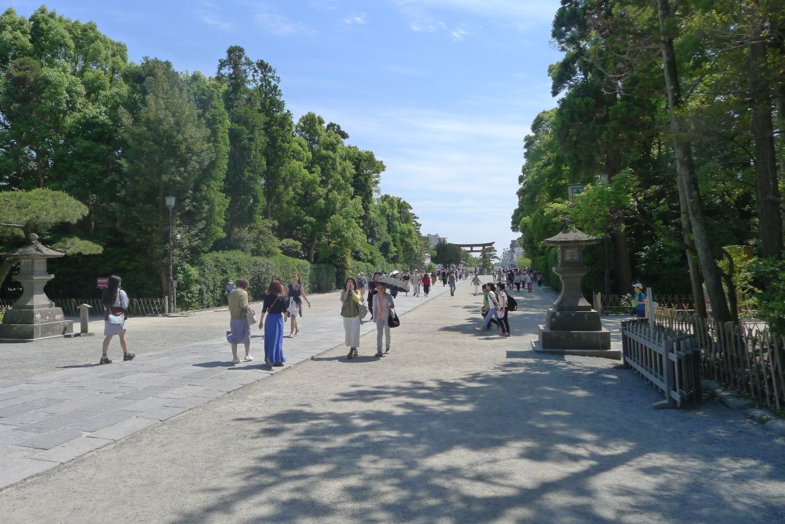 In the era of the shōgun (supreme military leader), the arched bridge (called Akabashi) was reserved for the shōgun. The shōgun would leave his entourage and proceed alone on foot to the shrine.