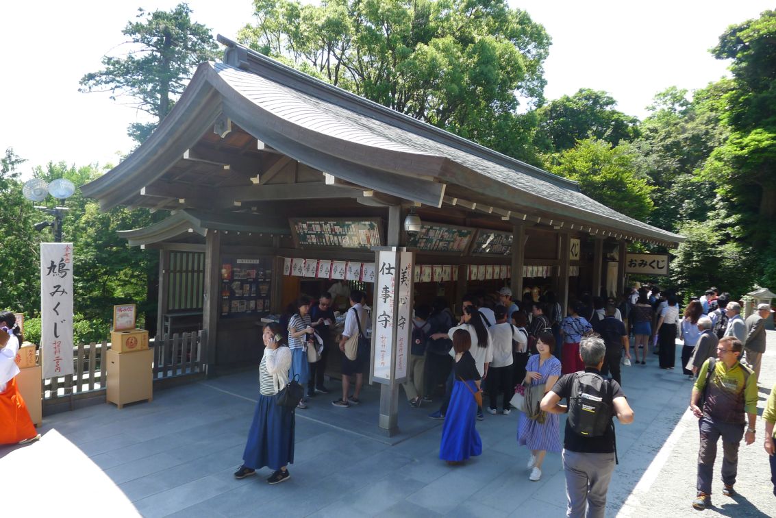 A lot of people are buying Ema and Omikuji from the souvenirs shop.