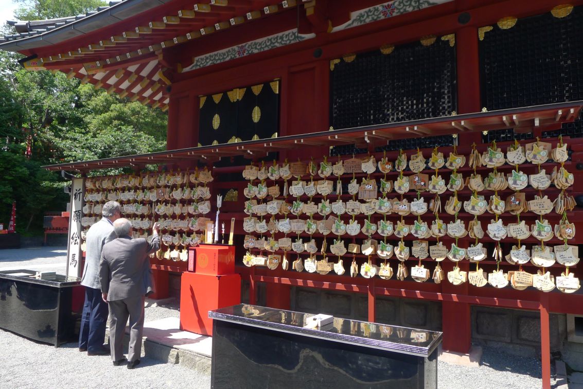 Ema comes in different shapes and form but they are often shaped like animals or other Shinto imagery. Sales of Ema help support the shrine financially.