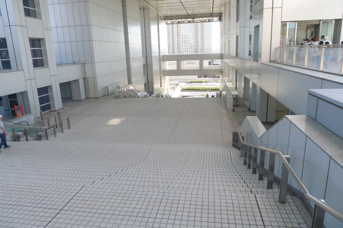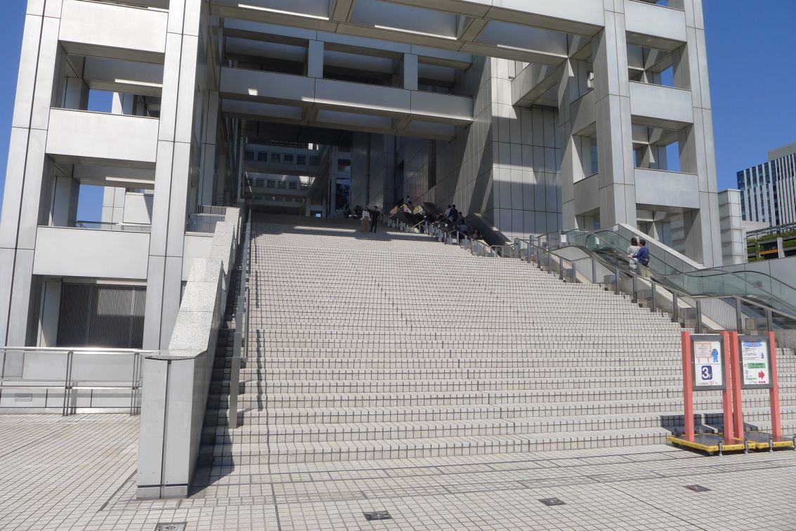 Stairs leading to main lobby of the Fuji TV Building.