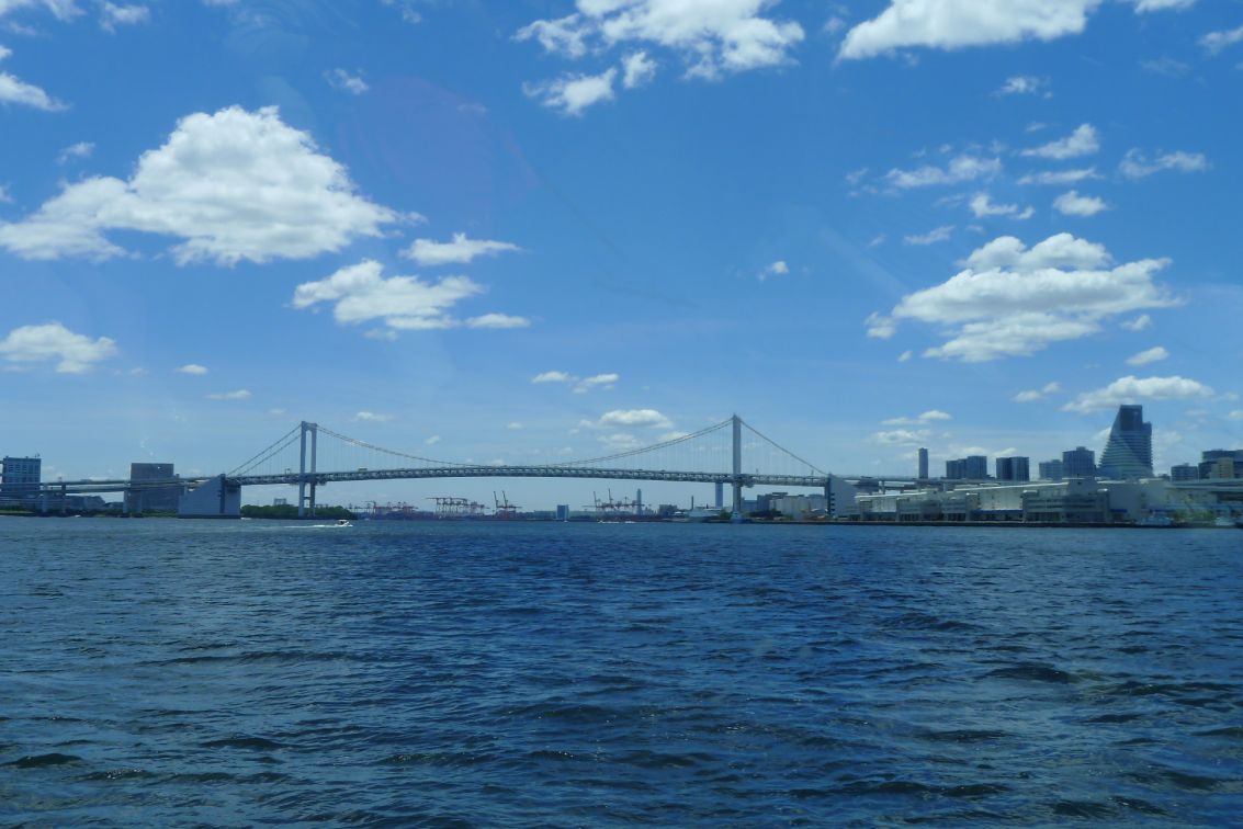 Crossing northern Tokyo Bay from the Odaiba waterfront to Shibaura Pier, Tokyo's Rainbow Bridge took six years to build and was finished in 1993. Almost 800 meters long, the bridge accommodates both vehicles and pedestrians. Pedestrians may not enter the walkaway at nighttime, and while bicycles may be pushed on the walkway they may not be ridden across. The bridge is a dominating view from the Odaiba Seaside Park observatory.