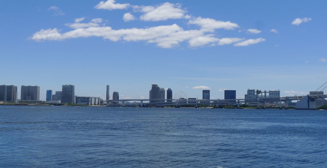 The tall building you see in the background on the left is the Fujitsu building located on Odaiba.