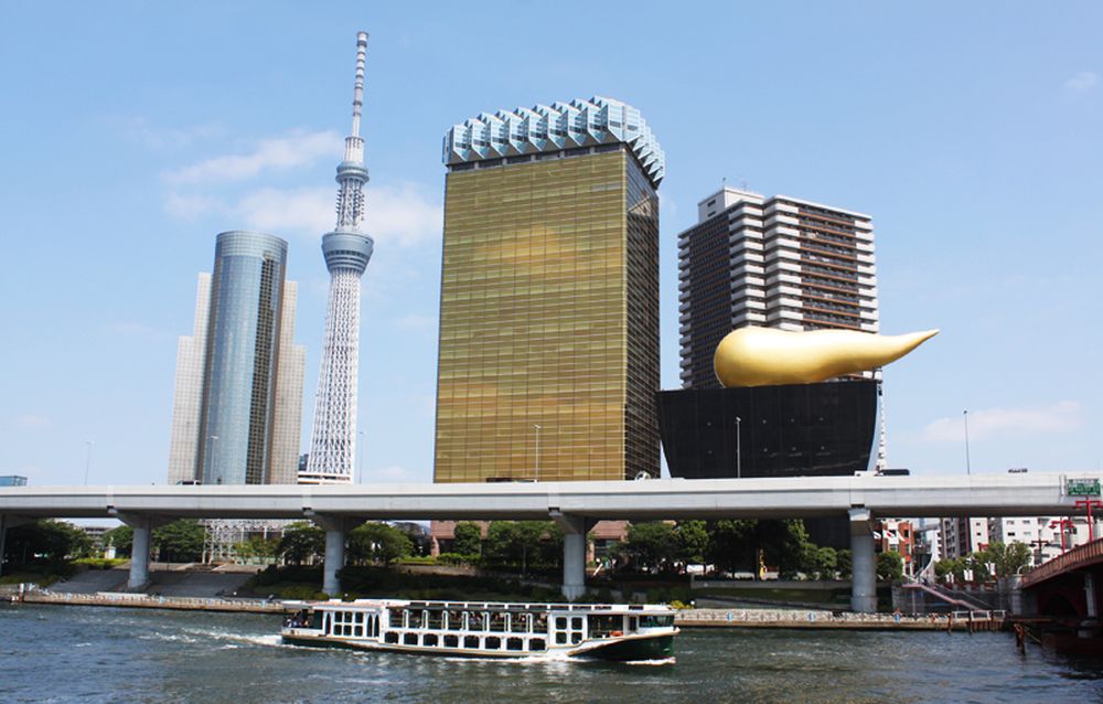 On the left is the he Tokyo skytree (pointy top) and on the right is Asahi Beer tower with the unique “Asahi Flame".