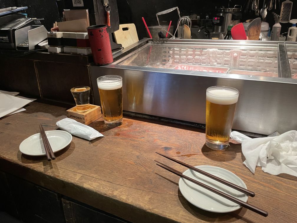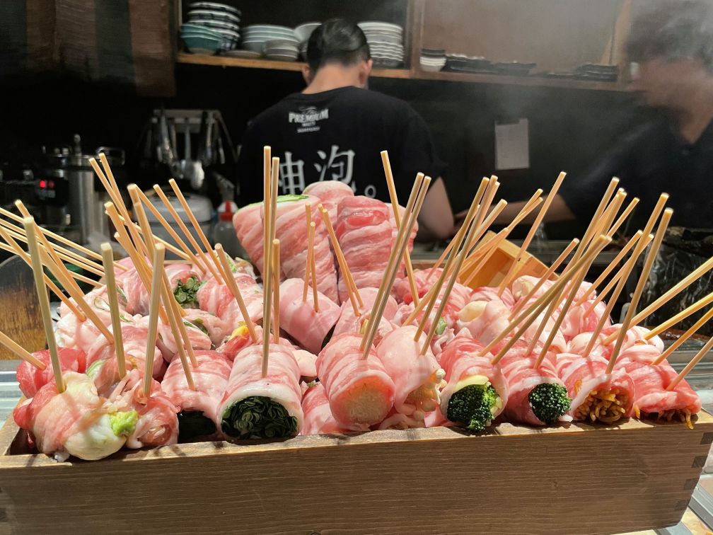 Jomon Roppongi are known for their grilled skewers and as soon as you sit down on the counter there are a multitude of pre-made skewers on display.