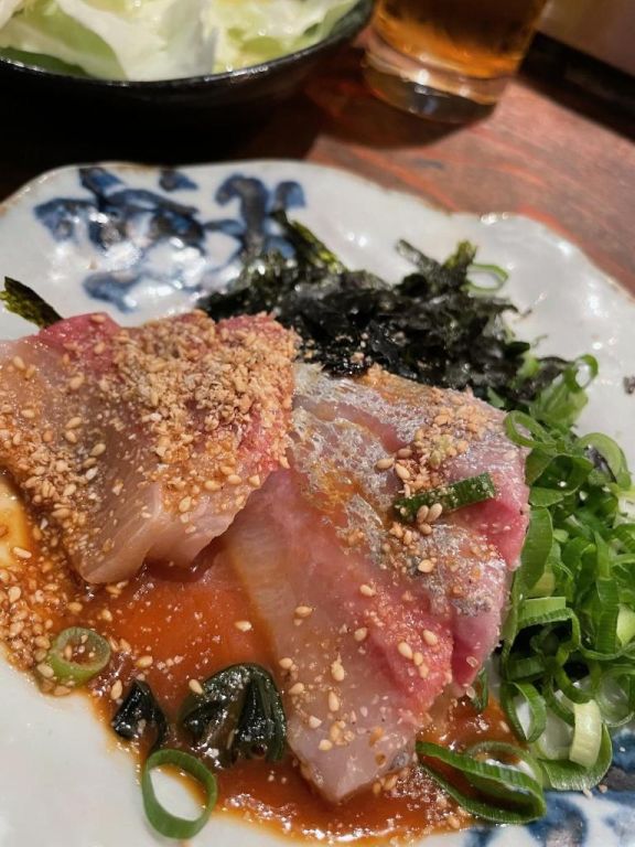 Amberjack has a rich, buttery flavor, succulent and the sesame sauce really give the dish a nice umami.