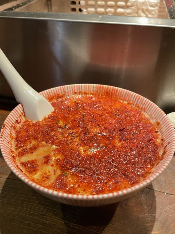 In japan people usually end their meal with some type of starch. Hoa asked our waiter which type of ramen he is recommending and he told us that their spicy noodle soup is very good and it indeed it was.