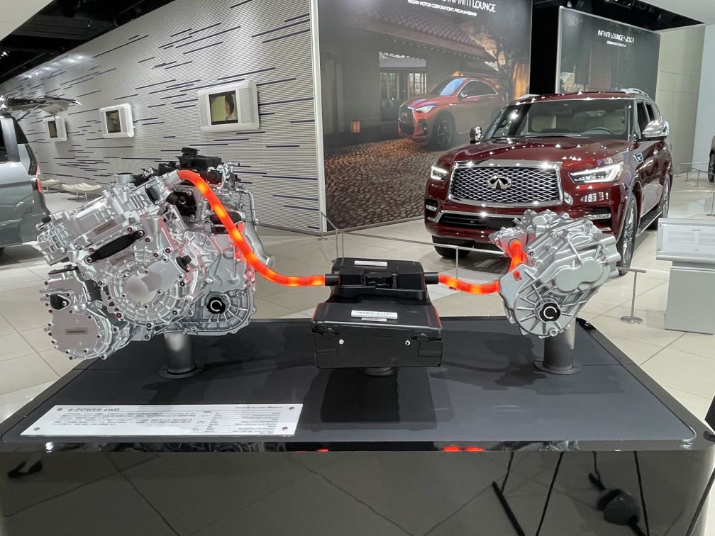Deconstructed e-power engine for viewing.