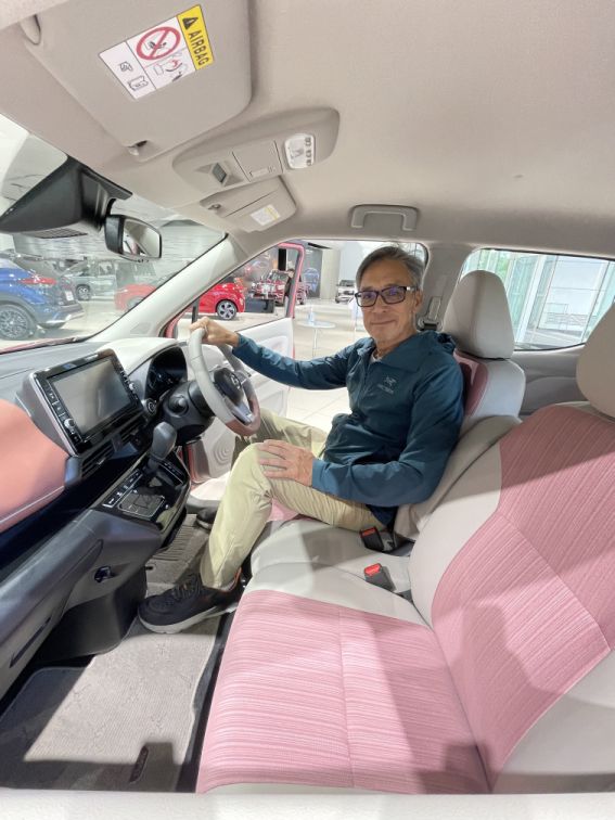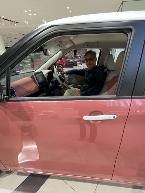 Hoa trying a car.